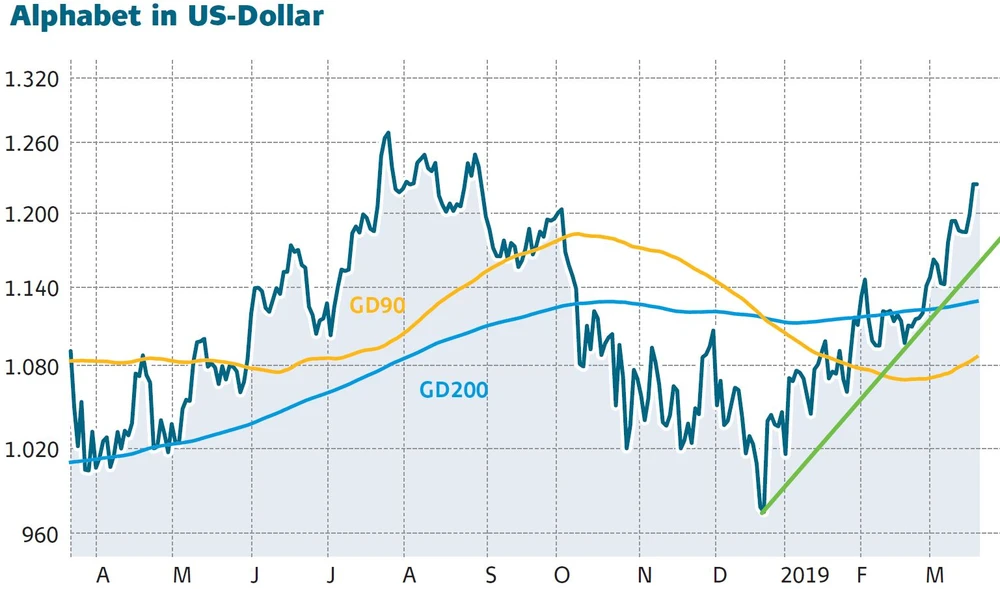 Es könnte also durchaus zu weiteren Milliardenstrafen kommen. Diese dürften jedoch angesichts der niedrigen Steuerlast und hohen Gewinne, die Google in Europa genießt, kaum ins Gewicht fallen. Entsprechend unbeeindruckt war die Reaktion des Marktes auf die Geldstrafe. Die Alphabet-Aktie legte um knapp zwei Prozent zu und damit etwa 17 Milliarden Dollar an Marktkapitalisierung – das 10-fache der Milliardenstrafe.