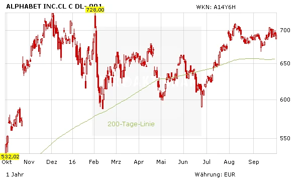 Von 49 Analysten, die Google covern, empfehlen 90 Prozent einen Kauf. Kein Wunder. Ein Ende des Wachstums ist nicht in Sicht. Für 2017 erwartet man einen Umsatzzuwachs von 16 Prozent auf 85 Milliarden Dollar und um 20 Prozent steigende Gewinne. Auch DER AKTIONÄR empfiehlt den Kauf der mit einem 17er KGV von 19 bewerteten Aktie. Ziel liegt bei 800 Euro.