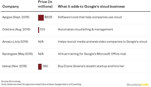 Kopf von Google Cloud wird Diana Greene. Seit knapp einem Jahr arbeitet Greene bei dem US-Konzern und hat viel Boden gut zu machen. Amazon Web Services hat letztes Jahr um die acht Milliarden Dollar Umsatz generiert. Um den Vorsprung von AWS – aber auch von Microsoft – aufzuholen hat Google massiv in die Cloud investiert. Nach eigenen Angaben tätigte man in den letzten zwölf Monaten Aufwendungen von 11,2 Milliarden Dollar. Seit November wurden zudem fünf Unternehmen aufgekauft, um der Entwicklung des Cloud-Sektors zu unterstützen.