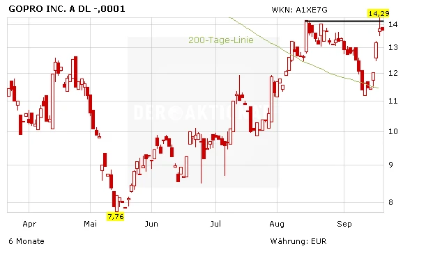 Nach der Korrektur in den vergangenen Wochen greift die GoPro-Aktie das Verlaufshoch vom August wieder an. Ob die Produkte ein Verkaufserfolg werden und GoPro aus den roten Zahlen helfen, weiß niemand. Die Empfehlung von DER AKTIONÄR aus Heft 33/16 liegt bereits 16 Prozent im Plus – Gewinne laufen lassen!