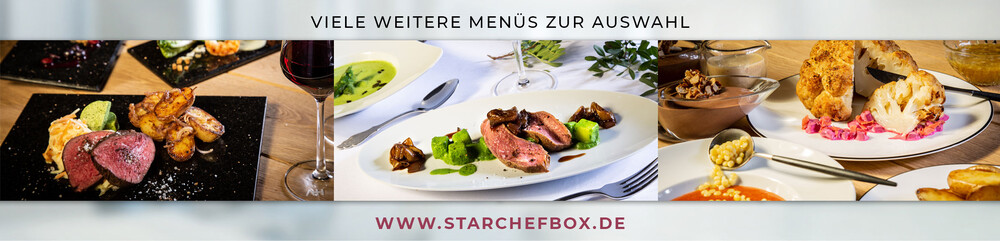 Die StarchefBox bietet kulinarische Extraklasse, die bequem nach Hause geliefert wird: Die enthaltenen Speisen sind bereits gekocht und müssen von Ihnen nur noch finalisiert werden. Dank beiliegender Anleitung ist der Veredelungsprozess mit nur wenigen Handgriffen erledigt. Am Ende wartet ein exquisites 3-Gang-Luxusmenü für zwei Personen auf Sie, das Sie entspannt zu Hause genießen können.