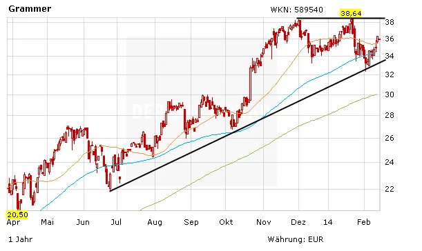 Auch wenn das Papier in den letzten Wochen etwas unter die Räder kam, fundamental läuft es bei Grammer gut. Die beiden Unternehmensbereiche - Automotive und Seating Systems – glänzen mit starken Zuwachsraten. Wesentliche Umsatztreiber werden in Zukunft vor allem China sowie Nord- und Südamerika sein. Ein guter Schachzug war auch der Zukauf des tschechischen Kopfstützenspezialisten Nectec Automotive. Weiterhin wird Grammer von der hohen Anzahl an Entwicklungsprojekten für zukünftige Serienanläufe profitieren.