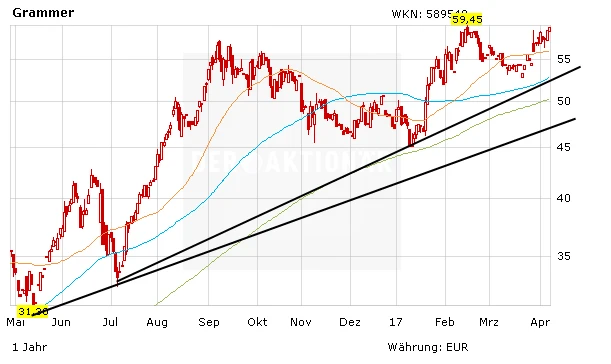 Die Zahlen für die ersten drei Monate waren gut, der Ausblick schmeckte dann vielen Anlegern doch nicht. Grammer bestätigte zwar den Ausblick für 2017, stellte aber weitere Unsicherheiten für die zukünftige -Unternehmensentwicklung aufgrund der beabsichtigten Kontrollübernahme durch den Investor Nijaz Hastor mit seiner Prevent-Gruppe in Aussicht.