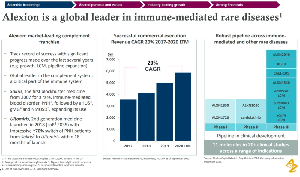 Die Vorstände beider Unternehmen haben die Akquisition dem Vernehmen nach einstimmig genehmigt. Der Abschluss der Transaktion wird für das dritte Quartal 2021 erwartet, nach dem Zusammenschluss kontrollieren die Aktionäre von Alexion rund 15 Prozent des kombinierten Unternehmens.