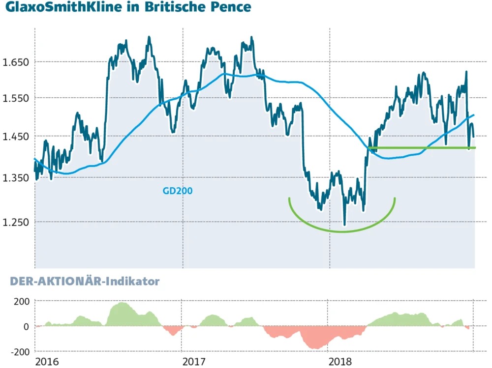 Die Akquisition von Tesaro hat dem Markt nicht geschmeckt und die GSK-Aktie unter die 200-Tage-Linie gedrückt. Dass die Briten das Konsumgütergeschäft mit Pfizer bündeln wollen, ist absolut sinnvoll, um Synergiepotenziale freizusetzen. Interessierte Anleger warten jedoch den Sprung über die Signallinie ab.