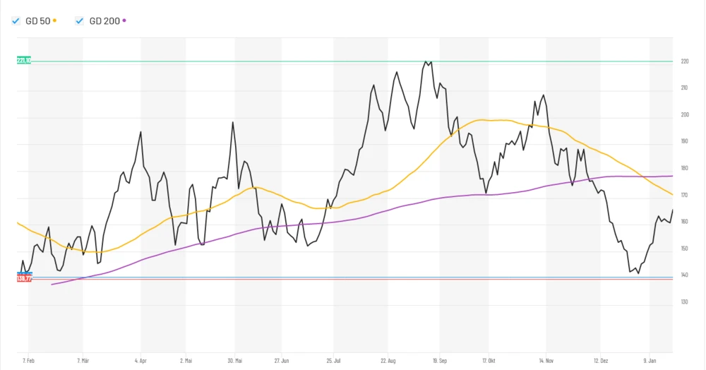 Für das vierte Quartal rechnet Albemarle mit einem Nettoumsatz zwischen 2,59 Milliarden und 2,65 Milliarden Dollar. Das entspricht einer Steigerung von 190 Prozent bis 196 Prozent auf Jahresbasis. Das bereinigte Ergebnis vor Zinsen, Steuern und Abschreibungen (EBITDA) wird zwischen 1,21 Milliarden und 1,26 Milliarden Dollar erwartet, das entspricht einem Anstieg um 429 Prozent im Vergleich zum Vorjahreszeitraum.