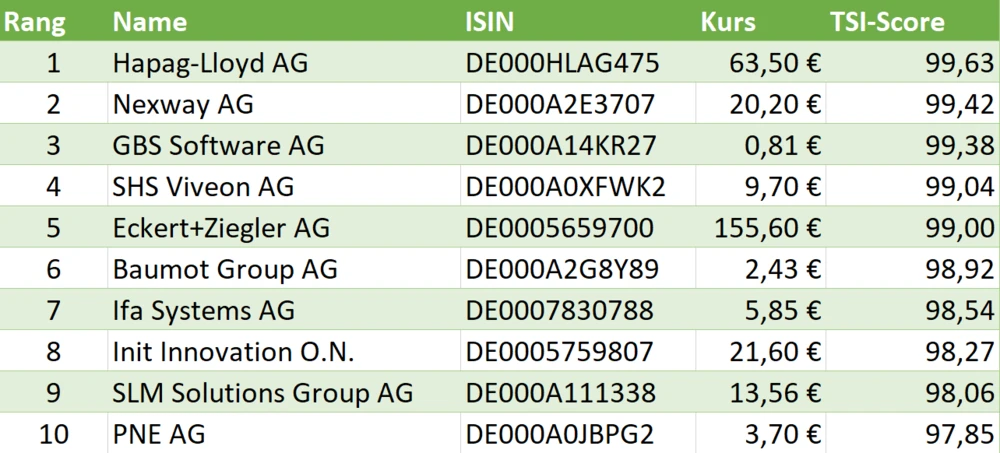 Welches sind die besten Aktien abseits von DAX, MDAX und SDAX für den Börsenwinter 2019/20? Mit dem Aktienauswahl-System wurde der gesamte deutsche Markt unter Titeln gescannt, die ansonsten völlig unter dem Radar der meisten Anleger segeln. Das Ziel: Investmentgelegenheiten mit gutem Chance/Risiko-Verhältnis zu finden. Das Ergebnis ist völlig unabhängig von fundamentalen Einstufungen oder sonstigen Einschätzungen zu sehen und bezieht sich rein auf den Vorteil, den eine Kapitalanlage nach dem Trendstärke-Prinzip TSI verspricht.