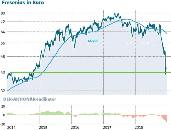 DER AKTIONÄR hatte bereits mit einer stärkeren Korrektur bei Fresenius gerechnet und ein Abstauberlimit bei 45 Euro platziert. Dieses wurde im Zuge des jüngsten massiven Rücksetzers erreicht. Die Aktie von Fresenius arbeitet derzeit an einer Bodenbildung. Bestehende Positionen sollten relativ eng mit einem Stopp unterhalb des jüngsten Korrekturtiefs abgesichert werden. DER AKTIONÄR empfiehlt deswegen, den Stopp auf 37,80 Euro nachzuziehen.