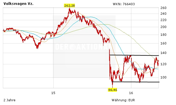 Der VW-Aktie tun die News jedenfalls gut. Charttechnisch befindet sich ddas Papier wieder im Aufwärtstrend. Der Widerstandsbereich zwischen 120 und 122 Euro wurde schnell zurück erobert. Im Bereich von 125,20 Euro verläuft aktuell die wichtige 200-Tage-Linie. Wird diese nachhaltig überwunden, wäre dies ein neues Kaufsignal. Kurzfristiges Potenzial hat die VW-Aktie dann bis 138 Euro.