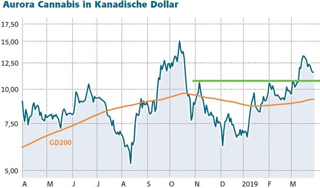 Während für den AKTIONÄR ganz klar die Aktie von Canopy Growth das Basisinvestment im Sektor bleibt, können Anleger nach dem jüngsten Rücksetzer auch beim etwas spekulativeren Wert, Aurora Cannabis, wieder günstig zugreifen. Gut 16 Prozent hat die Aktie seit dem Märzhoch korrigiert. Zuvor war das Papier aber auch extrem gut gelaufen. Hierfür gab es zwei Gründe. Zum einen eine Kaufempfehlung aus dem Hause Cowen Equity Research, zum anderen der Einstieg des US-Milliardärs Nelson Peltz als strategischer Berater bei Aurora. Der erste deutliche Kursschub war zu verzeichnen, als Cowen ein Kursziel von 14 Kanadischen Dollar und ein „Outperform“-Rating für die Aktie von Aurora ausgab. Sowohl im Hinblick auf Marktanteile als auch die Profitabilität dürfte das Unternehmen Maßstäbe setzen, so die Analystin Vivien Azer. Sie geht davon aus, dass Aurora schon bald den Sprung in die Gewinnzone schaffen wird. Der Ausbruch bei der Aktie gelang schließlich, als die Zusammenarbeit mit Peltz bekannt wurde. Aurora will mit dem Hedgefonds-Manager zusammenarbeiten, um gemeinsam mögliche Partnerschaften für den Eintritt in neue Marktsegmente auszuloten, hieß es von Seiten des Unternehmens. Peltz werde Aurora zudem bei seiner weltweiten Expansionsstrategie beraten, so Aurora weiter. Möglicherweise gelingt es Peltz auch einen hochkarätigen Partner bei Aurora an Bord zu holen. Dieser fehlt Aurora Cannabis im Vergleich zur Konkurrenz wie Canopy Growth, bei denen Constellation Brands groß eingestiegen ist, noch. Aus charttechnischer Sicht ist wichtig, dass im Zuge der jüngsten Korrrekturbewegung bei Aurora Cannabis das Ausbruchsniveau im Bereich von elf Kanadischen Dollar verteidigt werden kann.