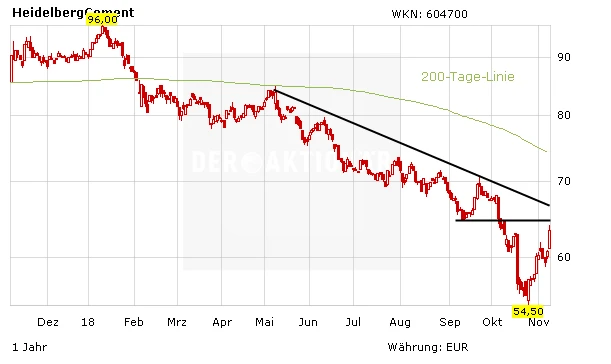 Im bisherigen Jahresverlauf hatten Anleger wenig Freude mit der Aktie von HeidelbergCement. Doch die Zahlen am Donnerstag überzeugen. Seit dem Tief vor zwei Wochen hat der DAX-Konzern bereits knapp 15 Prozent zugelegt. Ein Sparprogramm soll den Zementkonzern wieder in die Spur bringen.