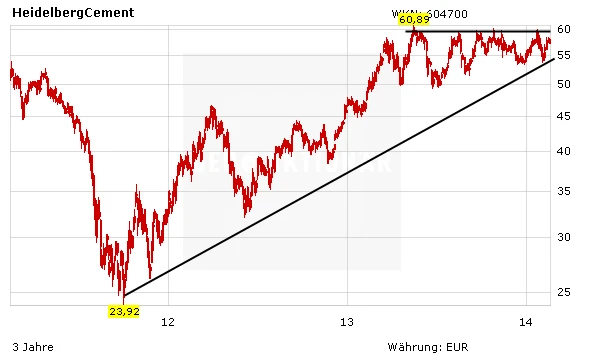 HeidelbergCement hat zuletzt mit dem starken Euro zu kämpfen. Der operative Gewinn vor Abschreibungen (EBITDA) ging im vierten Quartal 2013 nach vorläufigen Berechnungen um 5,3 Prozent auf 661 Millionen Euro zurück. Damit wurden die Erwartungen der Experten verfehlt, die mit 684 Millionen Euro rechneten. Der Umsatz im vierten Quartal erreichte mit knapp 3,5 Milliarden Euro fast den Vorjahreswert.