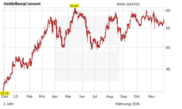 DER AKTIONÄR bleibt ebenfalls optimistisch für die Aktie von HeidelbergCement. Vor allem langfristig orientierte Anleger sollten am Ball bleiben. Vor allem wenn der Ausbruch über 60 Euro gelingt, sollte die Aktie wieder Gas geben. In diesem Falle kann sogar wieder über Zukäufe nachgedacht werden.