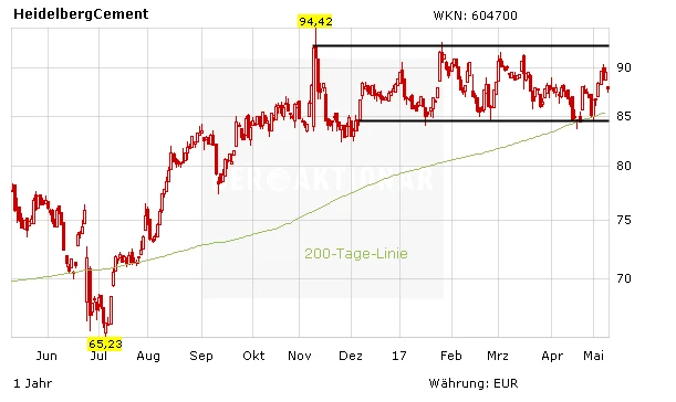 Die Aktie von HeidelbergCement zählt am Mittwoch zu den schwächsten Werten im DAX. Mit dem erneuten Rücksetzer ist der Ausbruch aus dem Seitwärtstrend auch im dritten Anlauf nicht gelungen. Ursache für die schwache Performance: Der Baustoffkonzern verzeichnet überraschend einen Gewinnrückgang.