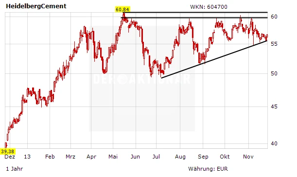 DER AKTIONÄR bleibt grundsätzlich optimistisch für die Aktie von HeidelbergCement. Investierte Anleger sollten am Ball bleiben. Gelingt der Ausbruch über 60 Euro dürfte die Aktie wieder Fahrt aufnehmen. In diesem Falle kann sogar über weitere Zukäufe nachgedacht werden.