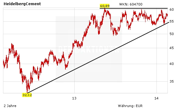 Zuletzt machte dem DAX-Konzern der starke Euro Probleme. Der operative Gewinn vor Abschreibungen (EBITDA) ging im vierten Quartal 2013 um 5,3 Prozent auf 661 Millionen Euro zurück. Damit wurden die Erwartungen der Experten verfehlt, die mit 684 Millionen Euro rechneten. Der Umsatz im vierten Quartal erreichte mit knapp 3,5 Milliarden Euro fast den Vorjahreswert. Für das laufende Jahr 2014 erwartet HeidelbergCement eine Fortsetzung der positiven Entwicklung in Nordamerika. Auch Europa, Skandinavien und Russland dürften weiter wachsen.