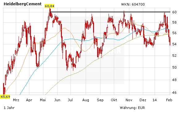 Auch wenn Konzern-Chef Scheifele sich zuletzt in Zurückhaltung geübt hat, sollten die Zahlen für 2013 keine bösen Überraschungen beinhalten. Fällt der Ausblick nicht allzu skeptisch aus, stehen die Chancen gut, dass das Papier von HeidelbergCement einen neuen Anlauf unternimmt, den Widerstandsbereich nachhaltig zu überwinden.