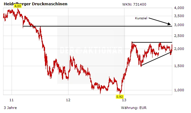 Die Commerzbank hat die Einstufung für Heidelberger Druck nach Quartalszahlen auf ¿Buy¿ mit einem Kursziel von 2,40 Euro belassen. Die Ergebnisse seien klar positiv zu werten, schrieb Analyst Daniel Gleim in einer Studie vom Dienstag. Der Maschinenbauer sei im zweiten Geschäftsquartal fast in die Gewinnzone zurückgekehrt. Die folgenden Quartale dürften seine Erwartungen bezüglich einer starken Erholung der operativen Margen weiter untermauern.