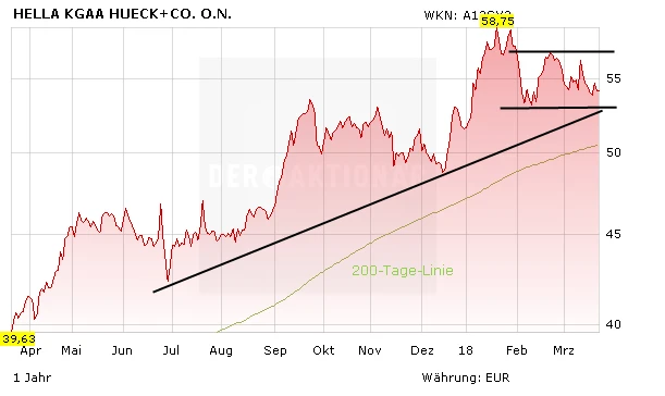 Fakt ist: Hella ist besser aufgestellt als andere Zulieferer, um vom noch jungen Trend in Richtung Elektromobilität überproportional zu profitieren. Der sich in einer Seitwärtsbewegung befindliche Kurs kann für Anleger eine gute Chance darstellen, sich vom Automobilzulieferer einige Stücke ins Depot zu legen. Begleitet von positiven Analystenstimmen sollte die Aktie ihre aktuelle Seitwärtsbewegung schon bald beenden. Das nächste Ziel wartet bei 60 Euro.