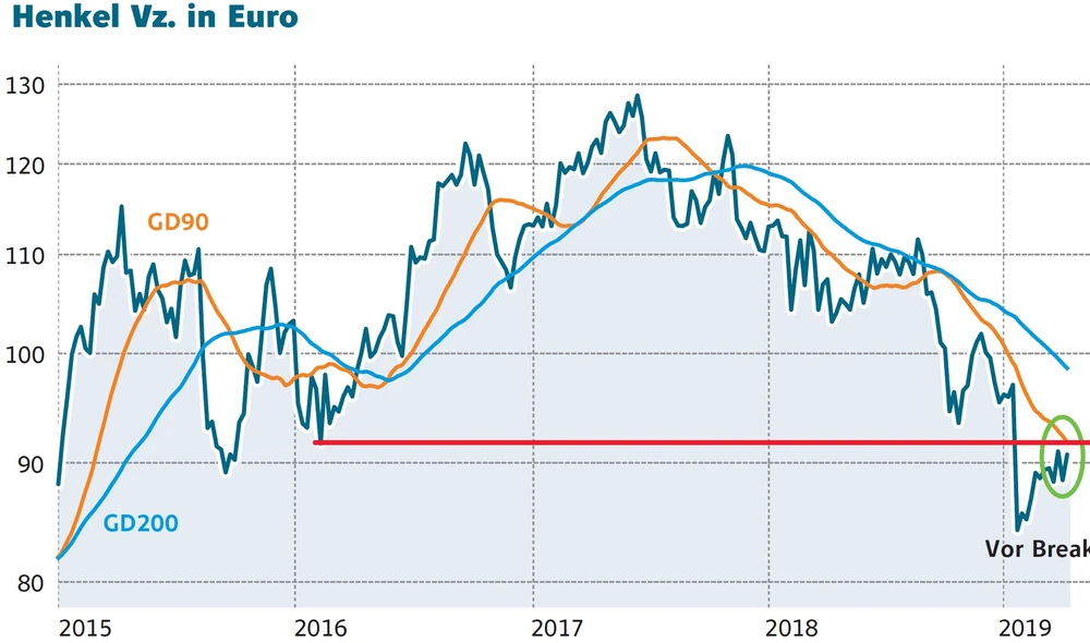Und fundamental? Da überzeugt Henkel nicht wirklich. Das 2019er-KGV liegt bei 16, was zwar günstiger als die Peer ist, aber angesichts eines erwarteten Gewinnwachstum von nur sechs Prozent niemandem vom Hocker reißt. Das Umsatzwachstum beläuft sich sogar nur auf drei Prozent. Problematisch für Henkel und überhaupt für die gesamte Branche: Die Kunden werden erschlagen von Deos, Waschmitteln, Shampoos und anderen Konsumgütern. Markentreue nimmt ab, günstige Discounterware macht den etablierten Herstellern das Leben schwer. Der Preiskampf dürfte sich noch zuspitzen.
