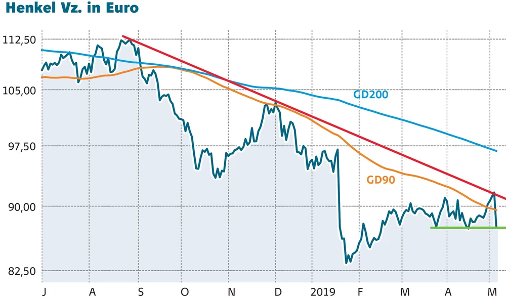 Die Henkel-Aktie enttäuscht nicht erst seit gestern. Seit dem Hoch 2017 bei 129 Euro hat der Titel 32 Prozent an Wert eingebüßt. Die Chancen auf eine schnelle Trendwende stehen nicht gut, zumal Henkel mit einem KGV von 16 definitiv kein Schnäppchen ist. Derzeit gibt es deutlich spannendere Investmentstorys. Kein Kauf.