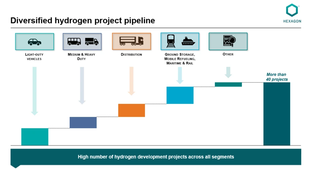 Der Bereich mit Wasserstoff-Technologien ist im Umsatzmix der Norweger noch unterrepräsentiert und schreibt rote Zahlen. Mithilfe von Skaleneffekten sollte die Gewinnschwelle in den kommenden Jahren erreichbar sein. Klar ist: Hexagon Composites hat bei vielen Wasserstoff-Projekten einen Fuß in die Tür gestellt.