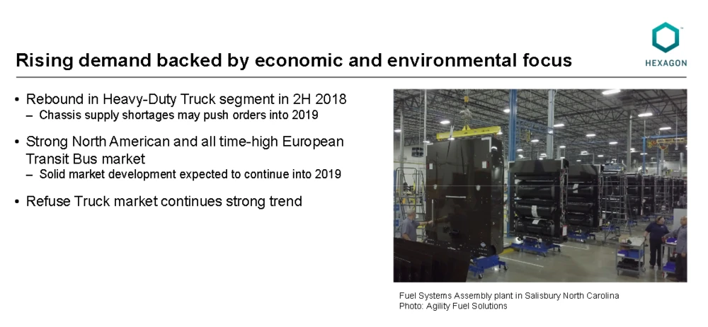 Dass Biomethan (CNG) gerade in Nordamerika auf eine immer größere Nachfrage trifft, thematisierte DER AKTIONÄR bereits vor wenigen Wochen an dieser Stelle. Gerade bei Bussen und Trucks ist der umweltfreundliche Antrieb sehr gefragt – für Linienbusse von New Flyer soll Hexagon Composites in den kommenden Jahren CNG-Druckgasflaschen liefern. Der Kontrakt beläuft sich auf rund 75 Millionen Dollar, zur Vertragsdauer macht die Hexagon-Composites-Tochter Agility Fuel Solutions keine Angaben. Laut den Norwegern fahren 35 Prozent aller neu zugelassenen Busse in Nordamerika mit Erdgas.