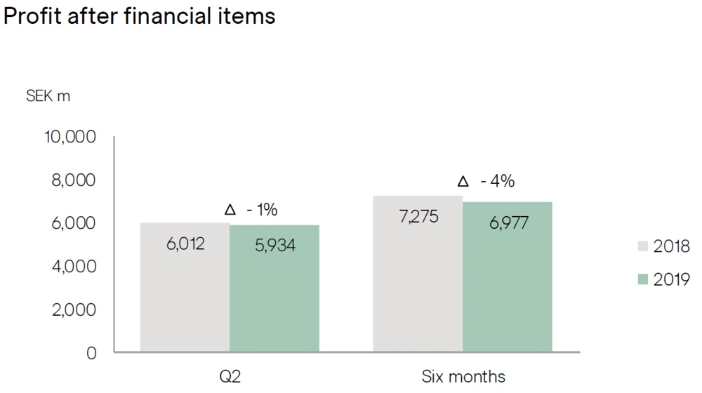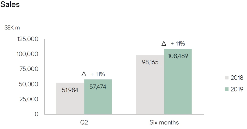 Auch für das dritte Geschäftsquartal rechnen die Schweden zunächst wieder mit leichten Einbußen. Das erste Halbjahr insgesamt spiegelt die Entwicklung der ersten beiden Quartale wieder: Der Umsatz stieg, während die Gewinne sanken. Wobei das Unternehmen im vergangenen Jahr von der US-Steuerreform profitiert hatte, heißt es.