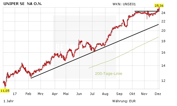 Fortum hat ein öffentliches Übernahmeangebot über 22 Euro je Uniper-Aktie abgegeben. Dank des Großaktionärs E.on haben sich die Finnen bereits die Zusage für einen Anteil von 46,65 Prozent gesichert. Das Uniper-Management versucht allerdings nach wie vor, die Übernahme zu verhindern. Inzwischen ist auch der Aktienkurs des MDAX-Konzerns auf über 25 Euro geklettert. E.on dürfte trotzdem am Deal festhalten. Mit Fortum wurde eine hohe Strafzahlung vereinbart, falls die Aktien nicht angedient werden. Frühestens bei Kursen um 26,50 Euro könnte E.on ins Grübeln geraten.