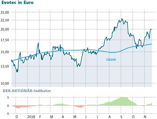 Evotec hat ebenfalls starke Quartalszahlen liefern können, woraufhin die Analysten der Deutschen Bank ihre Kaufempfehlung bestätigt und das Kursziel von 21 auf 22 Euro erhöht haben. Im dritten Quartal 2018 stieg der Konzernumsatz um 43 Prozent auf 96,3 Millionen Euro. Evotec profitierte dabei vom Wachstum im Basisgeschäft, dem Beitrag aus der Aptuit-Übernahme im vergangenen Jahr sowie hohen Meilensteinzahlungen. Das bereinigte Konzern-EBITDA stieg von 12,7 Millionen Euro im dritten Quartal 2017 auf 30,1 Millionen Euro. Die Prognose für das Gesamtjahr wurde bestätigt. Im laufenden Jahr wollen die Hamburger weiterhin den Umsatz um mehr als 30 Prozent über den Vorjahreswert von rund 258 Millionen Euro steigern. Das bereinigte EBITDA soll um etwa 30 Prozent (2017: 58 Millionen Euro) wachsen.