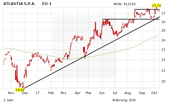 Der italienische Platzhirsch Atlantia hat bereits vor Monaten ein Gebot über 16,5 Milliarden Euro für Abertis abgegeben. Die Frist läuft hier noch bis zum 25. Oktober. Hochtief steht deshalb auch zeitlich unter Druck. Bis zum 19. Oktober muss aus regulatorischen Gründen eine Gegenofferte vorliegen, wenn man in einen Bieterkampf einsteigen will.
