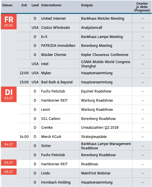 In der kommenden Woche geht es an der Börse erneut eher ruhig zu. Bis auf vereinzelte Hauptversammlungen stehen von Unternehmensseite kaum Termine an. Turbulent könnte es auf dem Aktionärstreffen der Hornbach Holding zugehen.