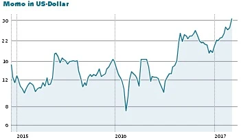 Für das vierte Quartal 2016 meldete Momo einen Umsatzsprung von 524 Prozent auf 246 Millionen Dollar, im Gesamtjahr betrug das Plus 313 Prozent. Vor Sonderfaktoren betrug der Gewinn 0,87 Dollar. Das KGV beträgt auf dieser Basis 35 – und geht in Ordnung.