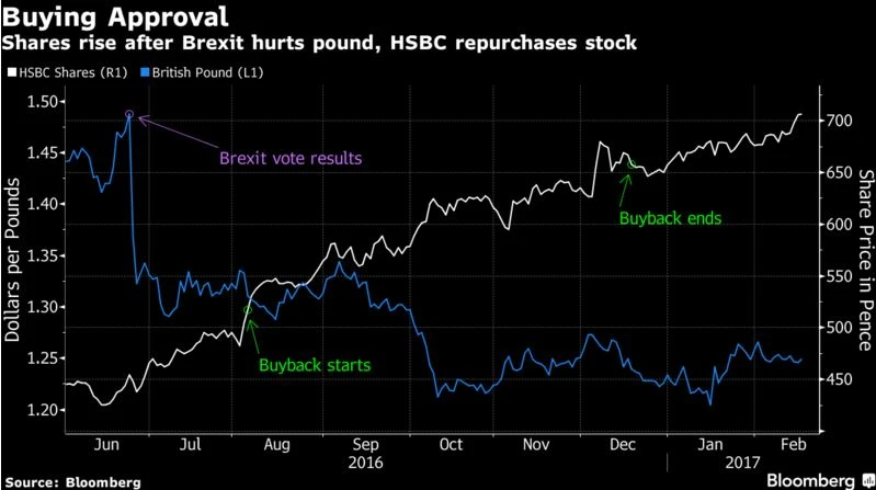 Analysten erwarten im Schnitt, dass der bestandene Stresstest den Weg für mehr als drei Milliarden Dollar an Kapital ebnet, dass an die Aktionäre zurückfließen kann. Alleine seit August letzten Jahres hat die HSBC eigene Aktien für 3,5 Milliarden Dollar zurückgekauft. Die Chancen für weitere Rückkäufer sind zuletzt gestiegen. Denn HSBC-Finanzvorstand Ian Mackay sagte kürzlich, dass annähernd acht Milliarden Dollar an Kapital aus den USA abfließen könnten und ein Teil davon für Aktienrückkäufe gedacht sei.