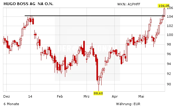 Einem Händler zufolge will Permira für die Boss-Aktien 101,50 Euro je Stück haben. Im Xetra-Hauptgeschäft hatten die Titel am oberen Ende der Spanne geschlossen. Im späten Frankfurter Geschäft fiel der Aktienkurs dann um mehr als drei Prozent, nachdem Informationen über den Verkauf durchgesickert waren. Im Handel bei Lang & Schwarz verliert das Hugo-Boss-Papier am Morgen 1,4 Prozent. Zuvor hatte die Aktie bei 106,05 Euro noch ein neues Allzeithoch markiert.