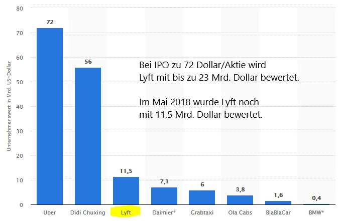Bewertungsexplosion bei Lyft seit Mai 2018