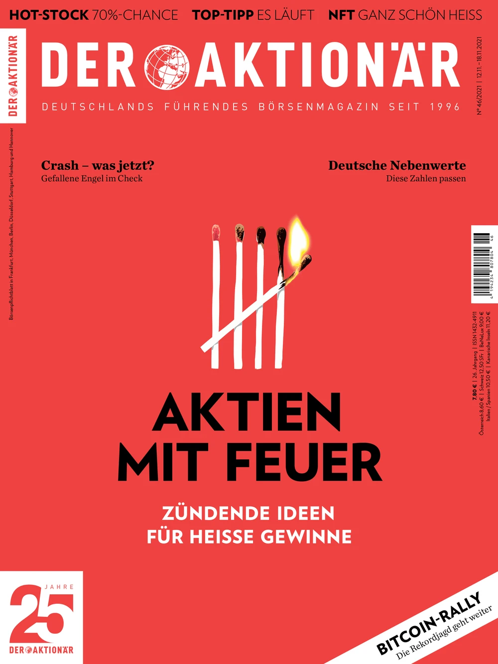 DER AKTIONÄR hat sich für die aktuelle Ausgabe 46/21 auf die Suche nach den heißesten Branchen der Stunde gemacht und daraus die Top-Aktien gefiltert, die das Potenzial mitbringen, Ihren Einsatz innerhalb weniger Monate zu verdoppeln.