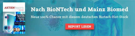 Um welche Aktie es sich handelt, was das Besondere an dem Ansatz des Unternehmens ist, was in den kommenden Monaten zu erwarten ist und warum sich Anlegern hier jetzt die Chance auf 100 Prozent Gewinn eröffnen kann, das erfahren Sie im neuen großen Aktienreport „Deutsche Biotechs starten durch: Nach BioNTech und Mainz Biomed – 100%-Chance mit diesem Hot-Stock“. Darüber hinaus steht der Vorstandschef dieser deutschen Biotech-Perle in einem großen Exklusivinterview Rede und Antwort.