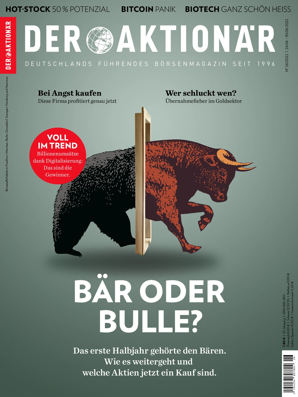 Die gute Nachricht: Die Stimmung befindet sich laut dem von der Bank of America ermittelten „Bull & Bear“-Indikator derzeit auf einem Rekordtief. Sprich: Weiter nach unten kann es nicht mehr gehen und vieles Negative sollte inzwischen in den Aktienkursen eingepreist sein. Dazu befinden sich viele Qualitätsaktien jetzt auf einem historisch günstigen Niveau. Zeit, Chancen zu ergreifen. Welche Titel das Zeug dazu haben, jetzt im zweiten Halbjahr eine beachtliche Rendite zu erzielen, erfahren Sie in der neuen Ausgabe von DER AKTIONÄR.