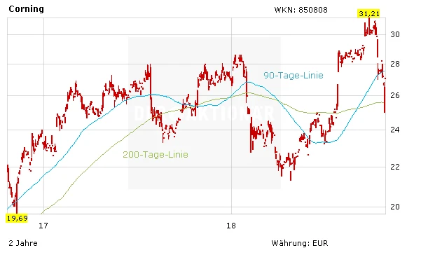 Insgesamt ein starkes Quartal von Corning. Die Wachstumsraten beschleunigen sich gegenüber den vorangegangen Quartalen und positive Preistrends geben der Gewinnentwicklung einen zusätzlichen Schub. Das 19er KGV von 15 wirkt für eine US-Wachstumsaktie geradezu billig. Der schwache Börseneröffnung am Dienstag drückte die Aktie jedoch unter den nachgezogenen Stopp des AKTIONÄR bei 25,00 Euro. Die langfristigen Chancen überzeugen – die Aktie wird auf der Watchlist belassen.