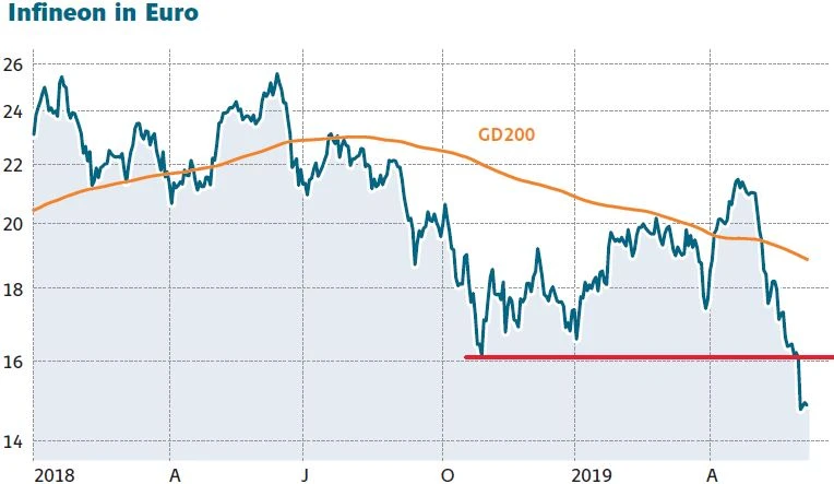 Die Aktie von Infineon hat seit Mitte April, als der Wert noch bei 21,62 Euro im Hoch notierte bis zuletzt mehr als 33 Prozent verloren. Selbst das Jahrestief 2018 wurde damit unterschritten. Das Unternehmen wagt den bisher größten Übernahmeversuch in der Unternehmensgeschichte. Die Marktteilnehmer sehen dies jedoch kritisch: „Strategisch absolut sinnvoll, aber (zu) teuer“, so der Tenor auf dem Parkett.