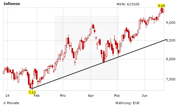Infineon ist hervorragend aufgestellt. Ein Ausbruch über die 10-Euro-Marke dürfte nur eine Frage der Zeit sein. Das langfristige Kursziel des AKTIONÄR lautet zwölf Euro. Investierte Anleger bleiben dabei und lassen die Gewinne laufen.