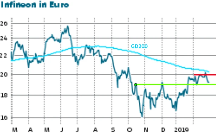 Die Infineon-Aktie befindet sich seit dem 25. Januar im Konsolidierungsmodus. Ein erster Versuch, den charttechnischen Widerstand bei 20 Euro nachhaltig zu überwinden, ist an der 200-Tage-Linie bei XXX Euro gescheitert.
