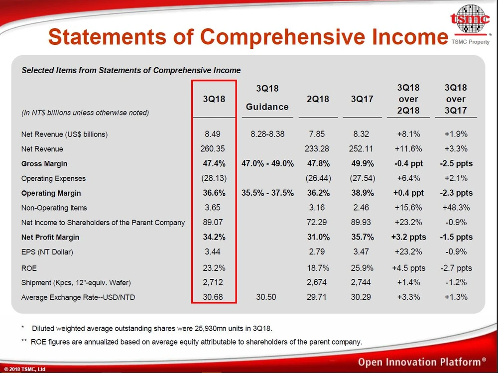 Die Taiwan Semiconductor Manufacturing Company, kurz TSMC hat heute die Zahlen für das dritte Quartal vorgelegt. Da TSMC nach Intel und Samsung der weltweit drittgrößte Halbleiterhersteller und der weltweit größte unabhängige Auftragsfertiger für Halbleiterprodukte ist werden die Zahlen in der Branche viel beachtet und dienen als Katalysator für Kursbewegungen für Chip-Werte.