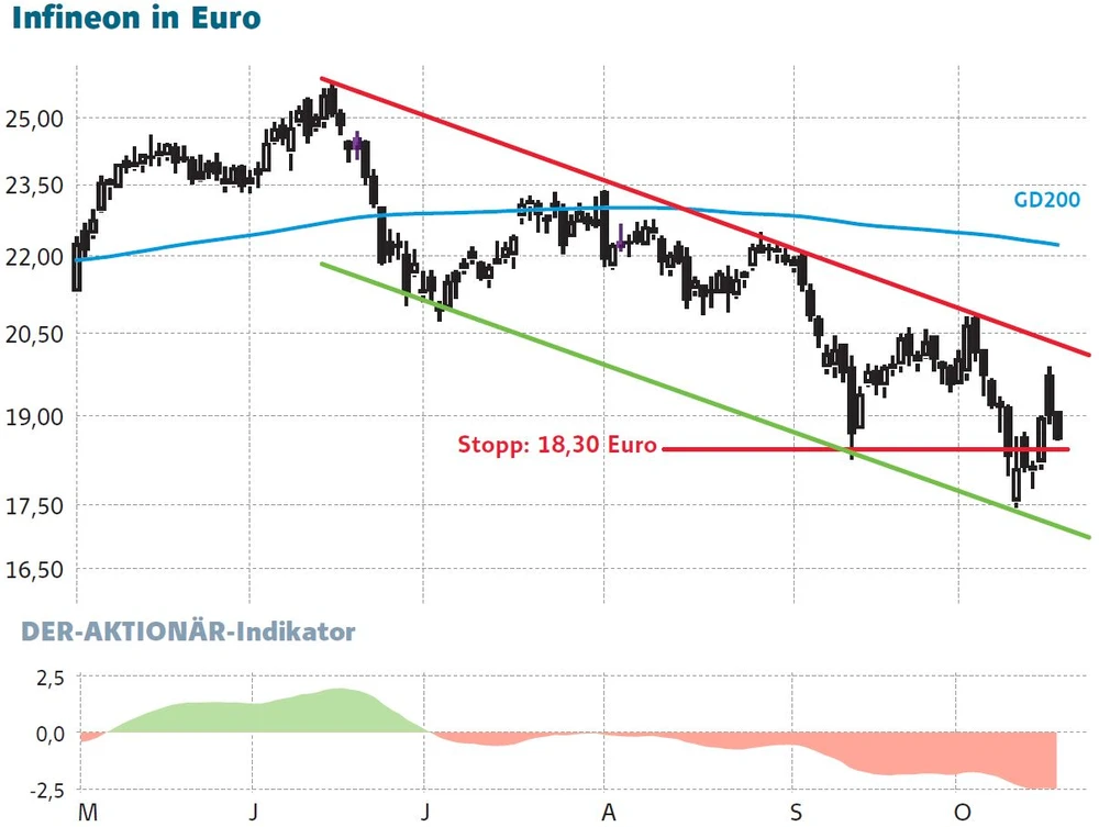 Das Zahlenwerk von TSMC nährt die Spekulationen der Bären, dass der Halbleiterzyklus doch nicht mehr so robust ist. Entsprechend schwächer präsentiert sich heute auch die Infineon-Aktie. Aus technischer Sicht besteht nun die Gefahr, dass das kürzlich beschriebene Erholungsszenario zunichte gemacht wird. Wer der Trading-Empfehlung gefolgt ist, sollte unbedingt den Stopp bei 18,30 Euro – das Entspricht dem Einstand - beachten.