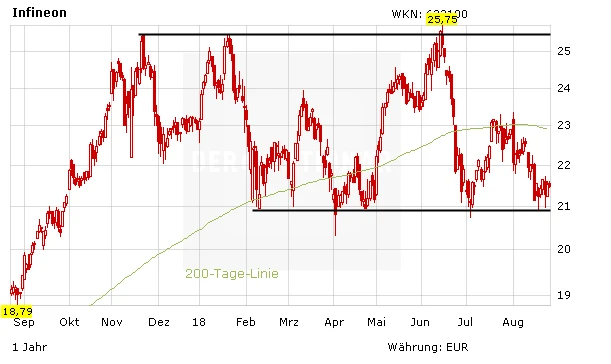Zuletzt war die Infineon-Aktie wegen der Krise in der Autobranche etwas unter Druck geraten. Nachdem zahlreiche Zulieferer Probleme bei den Margen gemeldet hatten, hat das auch den Chipkonzern belastet. Der Automotive-Bereich nimmt bei Infineon eine hohe Bedeutung ein und gilt als besonders wachstumsstark.