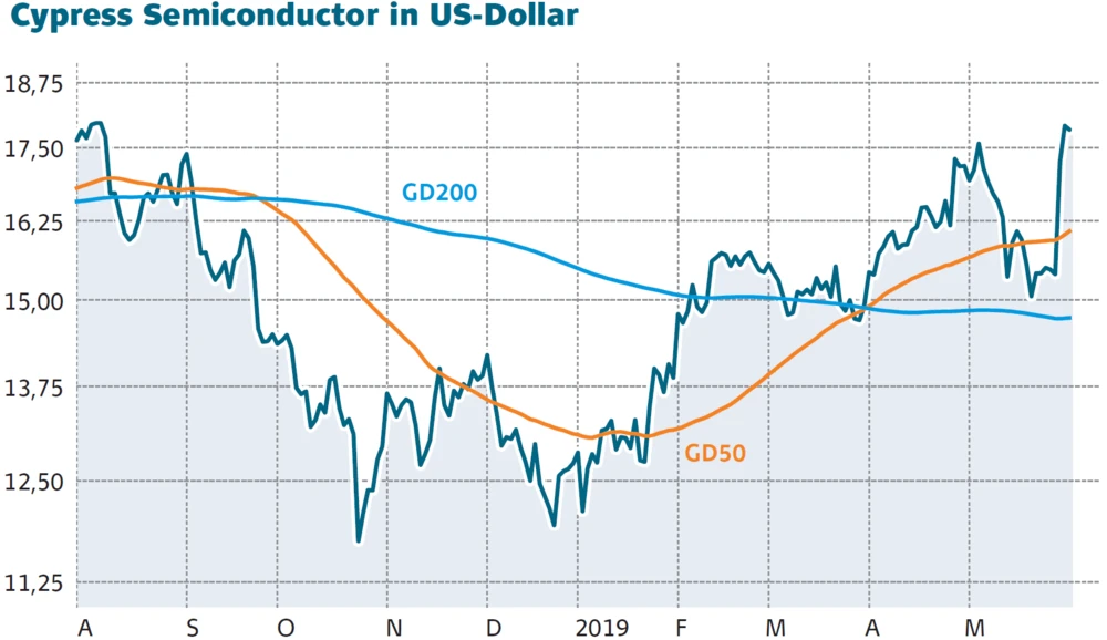 Je Cypress-Semiconductor-Aktie sei Infineon bereit, 23 bis 24 Dollar auf den Tisch zu legen. Bloomberg hat die Amerikaner bereits in der vergangenen Handelswoche als Übernahmekandidaten ins Spiel gebracht, entsprechend positiv hat der Kurs bereits reagiert.