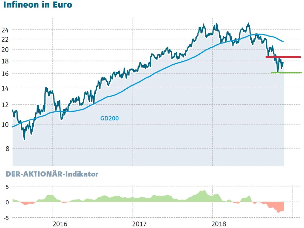 Mit einem Satz nach oben von 3,36 Prozent auf 17,68 Euro haben sich am Montagmorgen die Papiere von Infineon von ihrem Kurseinbruch am vergangenen Freitag erholt, als sie im Tief unter 17 Euro gerutscht und nur etwas darüber aus dem Handel gegangen waren.