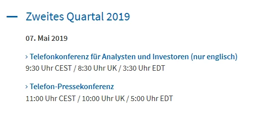 Im Gesamtjahr plant der Vorstand nach der Prognoseanpassung Ende März mit einem Umsatz von 8,0 Milliarden Euro (Vorjahr: 7,6 Milliarden Euro) - plus oder minus zwei Prozent. Dabei wird weiterhin ein künftiger Euro/Dollar-Wechselkurs von 1,15 unterstellt. Die Segmentergebnismarge wird bei 16 Prozent gesehen. Damit könnte am Ende des Fiskaljahres ein nahezu unveränderter Gewinn je Aktie von 0,91 Euro zu Buche stehen.