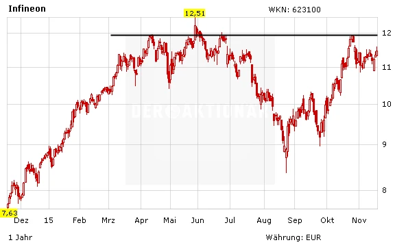 Das Papier profitiert am Mittwoch von den Meldungen und gehört im schwachen Gesamtmarkt zu den größten Gewinnern. Investierte Anleger lassen die Gewinne laufen und setzten auf einen nachhaltigen Sprung über die 12-Euro-Marke. Für Impulse dürfte die Veröffentlichung der Jahresbilanz am 26. November sorgen.